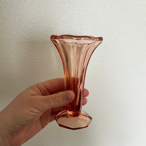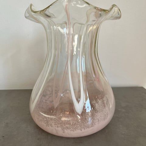 Vintage mat glasvase i lyserøde nuancer med swirl.