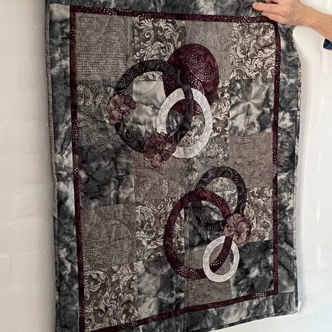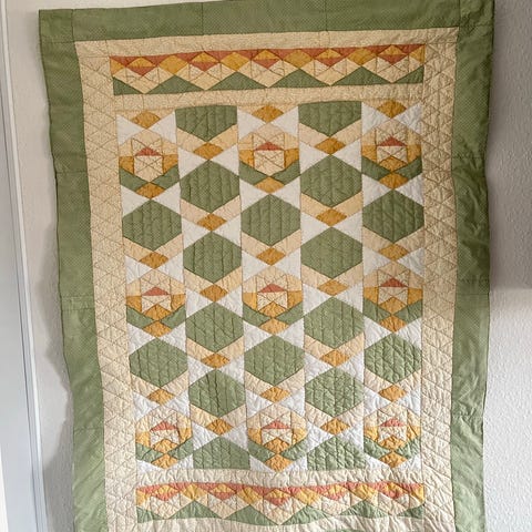 Håndsyet patchworktæppe / quiltet tæppe – 56 x 67 cm