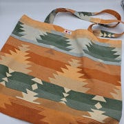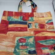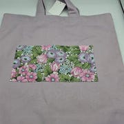 Stofnet i let, blødt stof med et elegant mønster i blå og grøn nuancer. Praktisk til hverdagsbrug og indkøb.