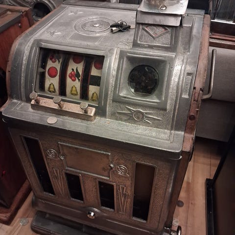 Spillemaskine, arcademaskine, yatzymaskine, pace, mills, Jenning, antik spilleautomat, enarmet tyveknægt, yatzymaskine, arkademaskine, flippermaskine, compugame
