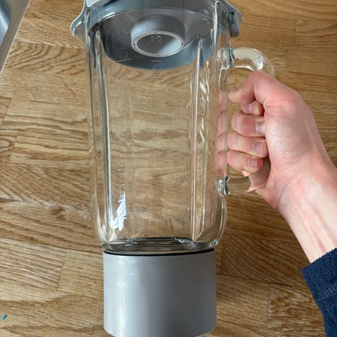 OBH Nordica blender med glas kande i gennemsigtig glas og sølvfarvet base. Blenderen har drejeknap med to hastighedstrin samt pulse-funktion. Kanden har måleskala og håndtag, og låget er udstyret med åbning til påfyldning under brug. Velegnet til blanding af smoothies, supper og andre flydende eller bløde ingredienser i køkkenet.