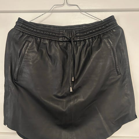 Second Female bluse til kvinder i str. L. Blusen er fremstillet i sort læder med korte ærmer. Ærmerne har perforeret struktur, mens kroppen er i glat læder. Rund halsudskæring og enkel, lige pasform. Velegnet til brug alene eller lag-på-lag over en top eller under en jakke.