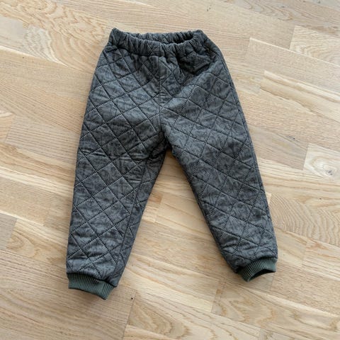 CeLaVi bukser i str. 80 til unisex. Bukserne er grønne og vatterede med elastik i talje og ved ankler. De har forstærkede knæpartier og refleksdetaljer på benene, som kan øge synligheden i mørke. Velegnede som overtræks- eller termobukser til køligere vejr.