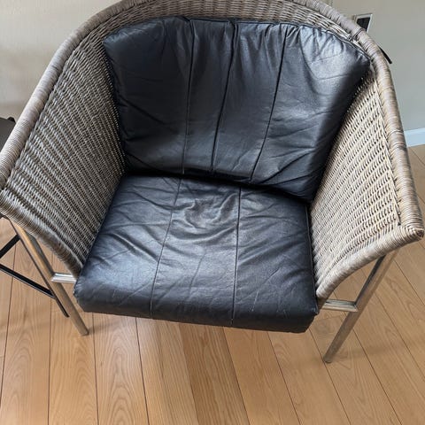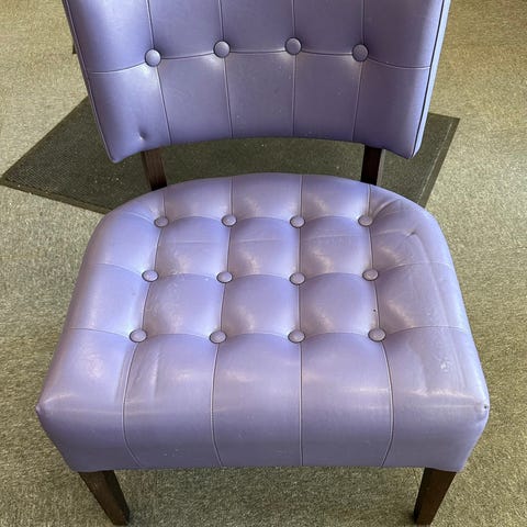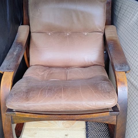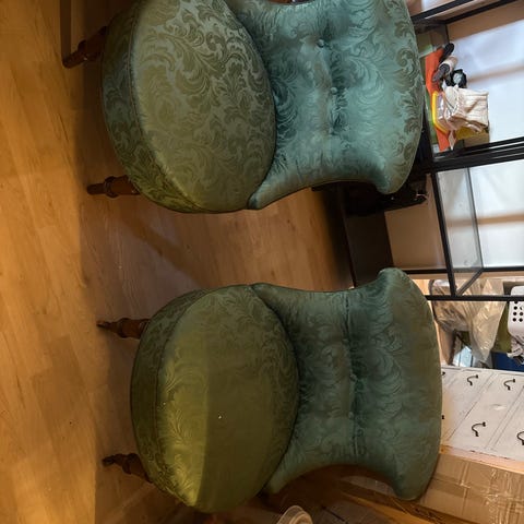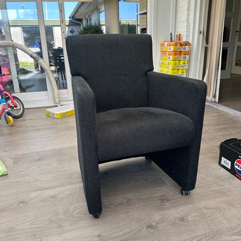 3 brunlige stofstole med hjul, nogle hjul er beskadigede. Kan afhentes med det samme.