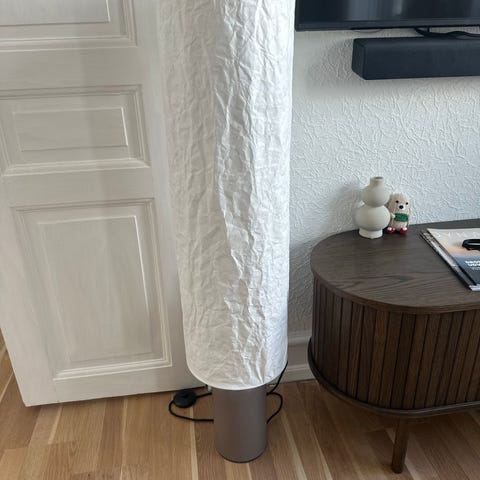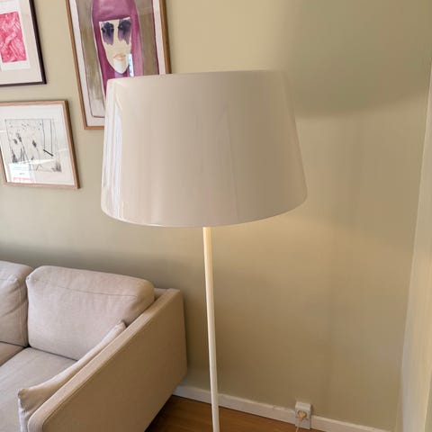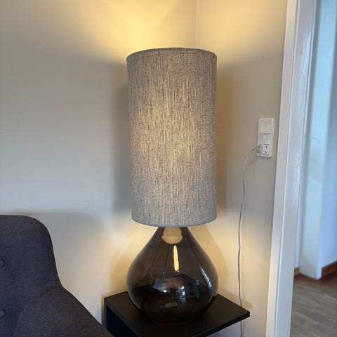 Flot gulvlampe i hør stof. 130 cm. Som ny, fast pris