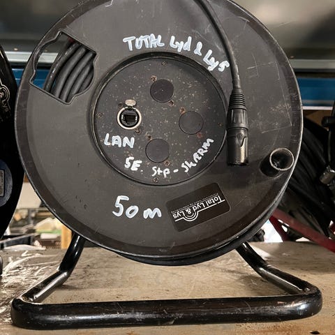 På kabeltromle med integreret stageboks i tromlen