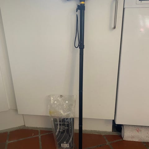 Justérbar stok med træhåndtag sort