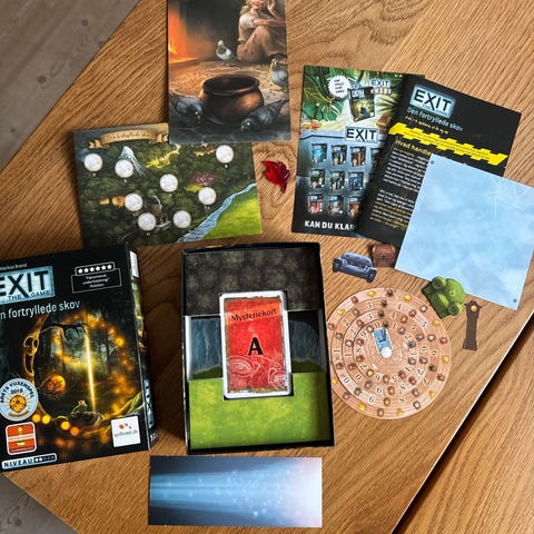 Exit The Game brætspil Døden på Orientekspressen og Den glemte ø. To escape room-inspirerede spil, hvor spillerne sammen skal løse gåder og puslespil for at komme igennem scenarierne. Spilæskerne indeholder kort, brikker og øvrige spilelementer, der bruges til at løse opgaverne undervejs. Velegnet som selskabsspil til hjemmebrug for spillere, der kan lide logiske udfordringer og samarbejdsspil.