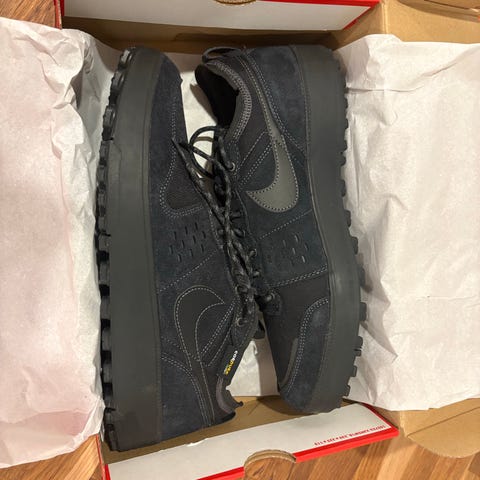 Nike sneakers i størrelse 45. Modellen er i sort med hvide detaljer og synlig støddæmpning i hælen. Overdelen er i syntetisk materiale og tekstil med snørelukning. Ydersålen har mønster for bedre greb. Velegnet som hverdagssko eller til let træning.