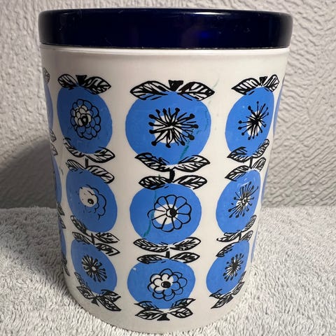 Aluminia 448/2068 lille fajance krus 6,5 cm høj ca 7 cm i diameter, design Grete Halland-Hansen uden skår og afslag