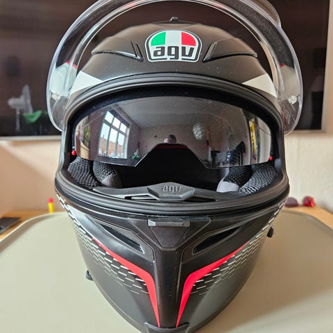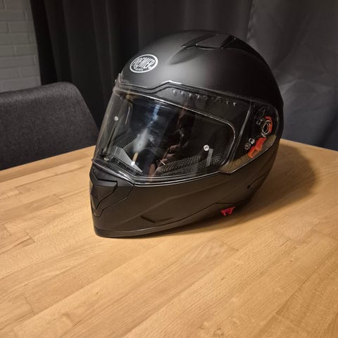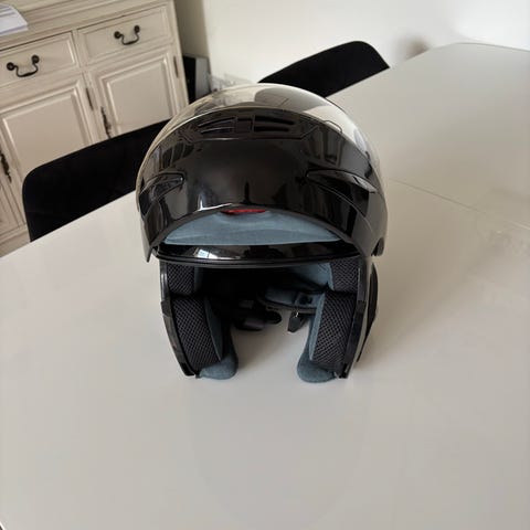 Denne model er en såkaldt "transformer"- hjelm, hvilket betyder, at den har en aftagelig hagebeskytter, så den kan bruges som både helhjelm og som en åben jet-