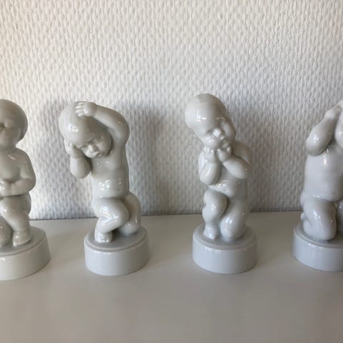 De fire piner fra Bing og Grøndahl. Hvidt porcelæn. Udført i Blanc de Chine. Designet af Svend Lindhardt.