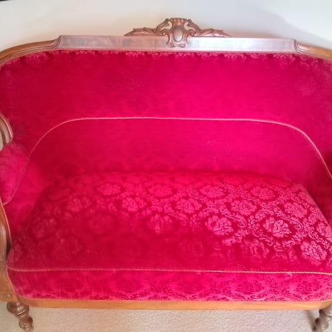 Blå sofa med udskåret træramme