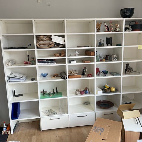 Tre Swedese reoler i hvidlakeret ask. Ingen synlige brugsspor. Sælges samlet eller hver for sig. H 227, B38, D 30. Nypris 7500 kr. 4500 stykket. Sælges samlet for 12.000 kr. Hentes i København.