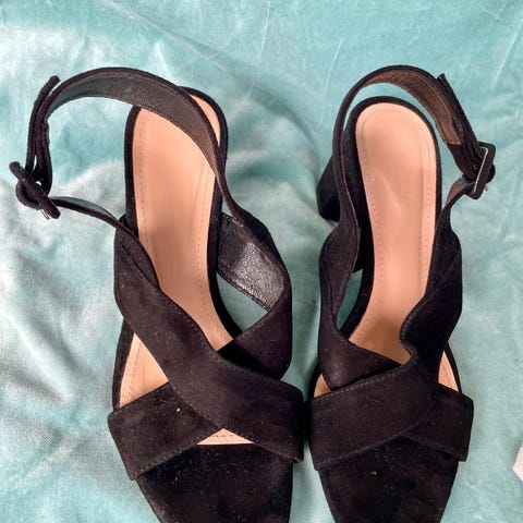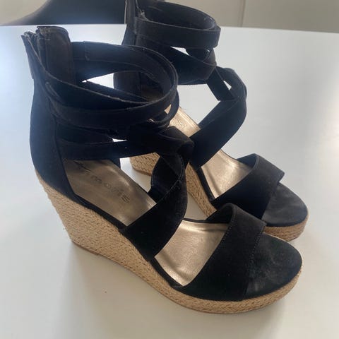 Super flotte næsten nye sandaler m. lille plateau og lynlåslukning bag. Brugt en gang.