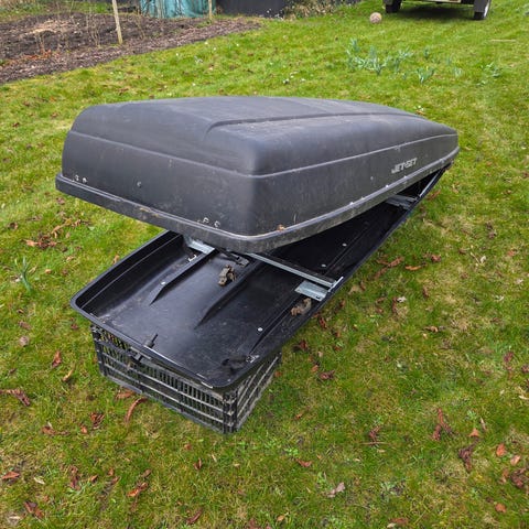 Der følger et par tagbøjler med som kan monteres på tagrælinger (så man kan fragte boksen hjem)