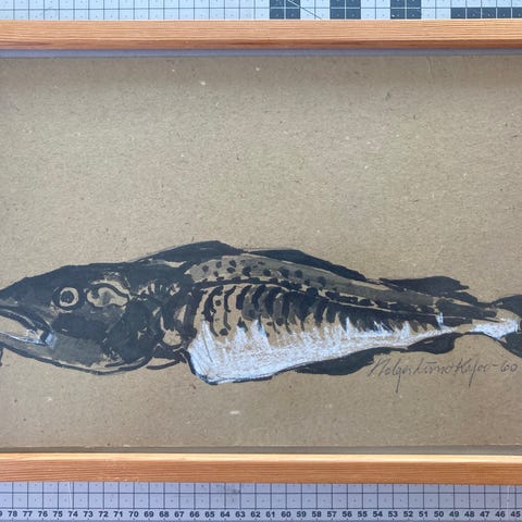 Holger Lund Kofod, f. 1933, bornholmermaler, parti fra Ringeby ved Vestermarie, Bornholm, 55x60cm, tilsalg i Bornholms Kunsthandel