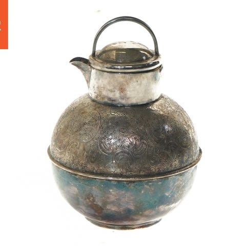 Denne genstand er en antik sølv sukkerskål med dekorative håndtag og en elegant, riflet overflade. Skålen står på tre små ben og har et vintage look. Det kan være lidt patina på overfladen, hvilket giver det karakter. Skålens størrelse er 10x11 cm.