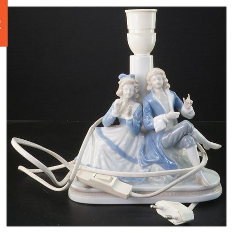 Vintage bordlampe med asiatisk motiv (str. 42x11 cm)