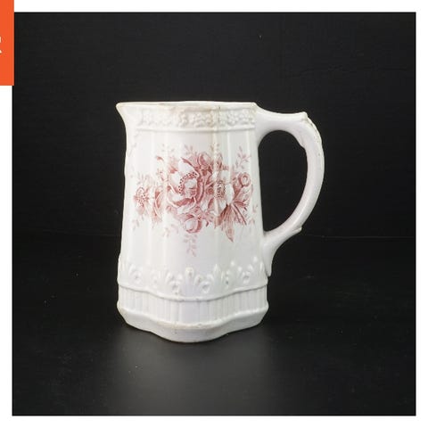 En antik kande med en dekorativ indgravering over hele overfladen. Kanden har en afrundet form med en tud og hank, hvilket gør den ideel til hældning. Den er fremstillet af metal og viser tegn på patina, hvilket giver et vintage look. Den indre del af kanden er synlig og viser nogle brugstegn. Måler 18x13 cm.