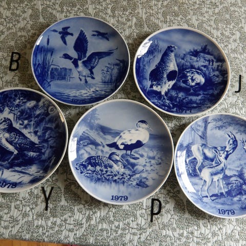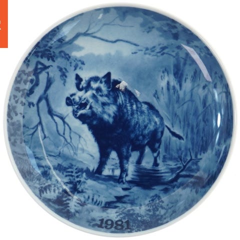 Jagtplatte med grævlinger fra 1977 fra Tove Svendsen (str. Ø 19,5 cm)