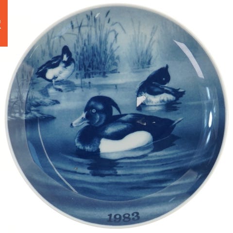 Denne jagtplatte har et motiv af to grævlinger i en skov scene. Den er fra året 1977 og har en diameter på 19,5 cm. Bagsiden af platten har inskriptioner inklusive navnet 'Tove Svendsen Kunshåndværk ApS'. Dette stykke er en del af en samling af jagtplatter. Tags: jagtplatter, grævlinger, samlerobjekt.