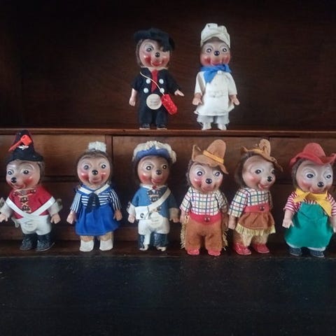 Rar Stanlio & Ollio-figurer i plastik, produceret i 1960’erne af det historiske italienske firma Ledra, blandt de mest berømte mærker inden for produktion af gummi- og plastlegetøj i efterkrigstiden.