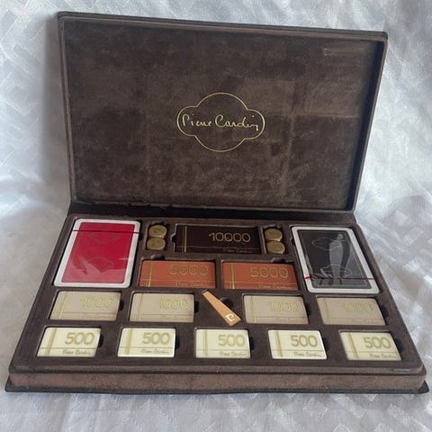 Dal Negro, en vintage Treviso spillekuffe fra Italien, med original emballage, 40 cm bred og 27 cm høj, dateret til 1970–1980, i god stand og incl. terninger, chips og nøgle som vist. Klik på den blå "gå til varen" knap, for at købe eller byde på denne vare. Den samlede pris vil blive vist inden du afgiver dit bud.