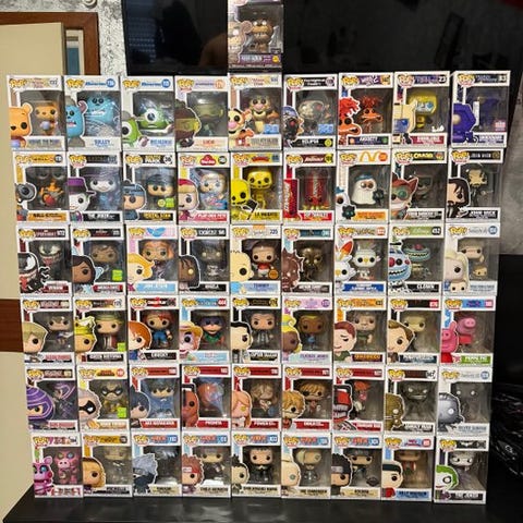 Hej, der tilbydes 25 fantastiske Funko Pop, hvoraf 21 er Dragon Ball, 3 er Fallout og 1 er Fnaf. De findes alle i Italien og er i en tilstand på 9 ud af 10.