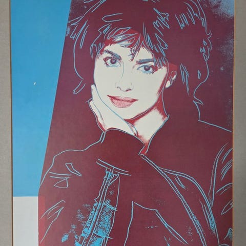 Portrættegning i pop-collage-stil. Signeret på pladen af Anciny -