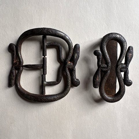Beskrivelse: Sæt af to smukt udførte sølvfibulae (mantelspænder eller tørklædespænder) fra Tunesien: en (historisk) brugs- og udsmykningsgenstand, der blev anvendt som lukning af beklædningsgenstande.