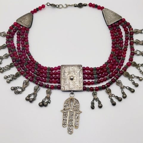 Hovedpynt / tempel - Omdannet til halskæde - 255 g - Sølv, Glas - Tunesien - ...