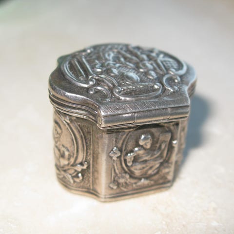 Sølv talismanboks fra Nepal, 4 cm bred og 6 cm høj, fra midten af det 20. århundrede, i god stand, ægte/original, fra privat samling. Klik på den blå "gå til varen" knap, for at købe eller byde på denne vare. Den samlede pris vil blive vist inden du afgiver dit bud.