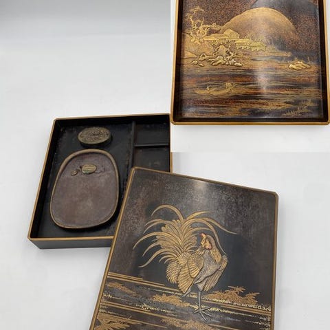Antique Suzuribako 硯箱 (writing box) - Boks - Antik suzuribako med nashiji-lak...