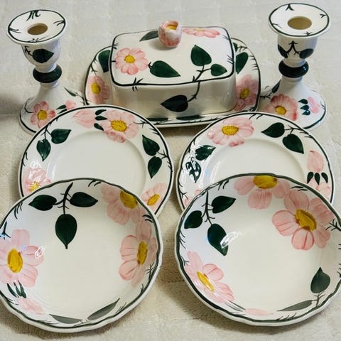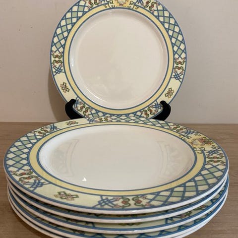 Smukt sæt tallerkener med brugsspor. Venligst se billederne, som udgør en meget vigtig del af beskrivelsen.