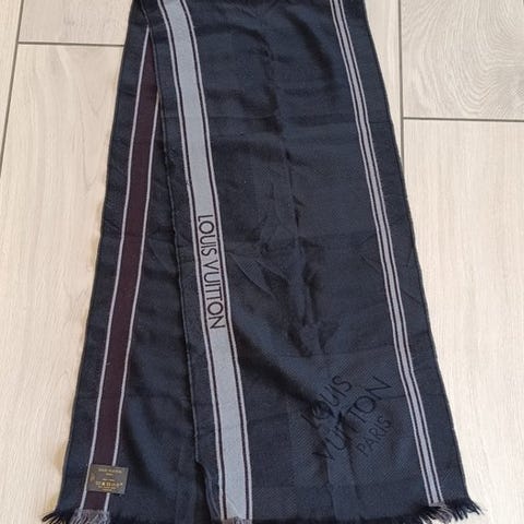 Halstørklædet er i bomuld og kasmir ensfarvet blå marine - Damier-motiver i relief er på hele halstørklædet - Indskriften "Louis Vuitton" er broderet nederst på halstørklædet.