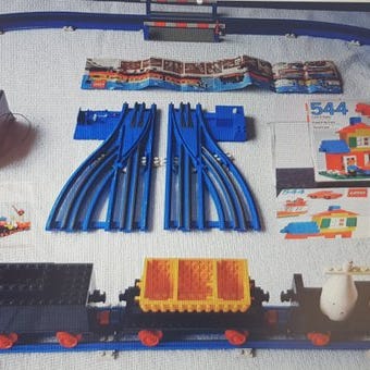 Lego Santa Fe Super Chief – Fuldendt tog (7 sett), brugt, bestående af syv delsett (10020 Lokomotiv, 10022-1 Sporvognsmadvog, 10022-2 Observationsvogn, 10022-3 Spisvogn, 10025-1 Bagagevogn, 10025-2 Postvogn) med manualer, alle deledele er komplette bortset fra let misfarvning på nogle lysegrå dele, samt 19 lige sporet Light Bluish Gray inkluderet. Klik på den blå "gå til varen" knap, for at købe eller byde på denne vare. Den samlede pris vil blive vist inden du afgiver dit bud.