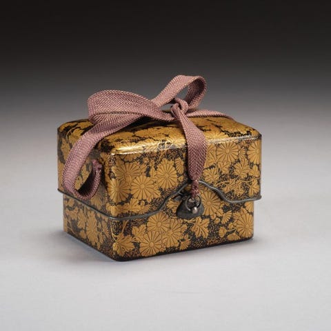 Ashanti-folket, Asante, har mestrer kunsten i tabt-voks-støbning, hvor kobberbaserede metaller blev betragtet som hellige og anset for at være underordnede guld, for at fremstille rituelle og prestigegenstande, såsom den messing Kuduo, der var tilsigtet, ud over at opbevare gulddrys til brug i husligt, familiært og kongeligt tilbedelse. Ofre og gaver blev undertiden ofret til dem. De blev også undertiden begravet sammen med ejeren. Boksen ledsages af et sæt gamle guldvægte af forskellige former, både geometriske og figurative.