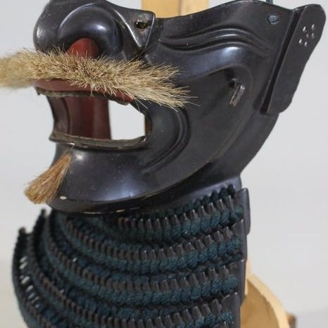 Mengu/Menpo - Japan - Tetsu Kurourushinuri Menpo med Kiritsuke kozane Mendare...