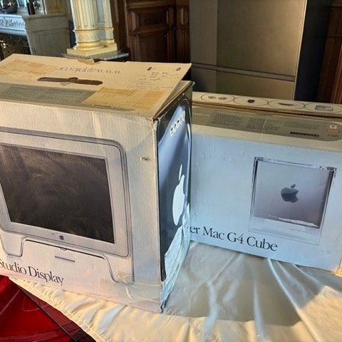iMac G4 “Sunflower” med Apple Pro Speakers, 120 GB hukommelse, årgang 2001, meget god stand, fuldt funktionel, inklusive originalemballage. Klik på den blå "gå til varen" knap, for at købe eller byde på denne vare. Den samlede pris vil blive vist inden du afgiver dit bud.