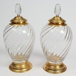 Paar Baccarat-krystal lysestager, støbt, skåret og gravlagt, tilskrevet Médaillons-modellen og dateret til 1960–1970, med en rund perleret fod, baluster-stilk og prismeagtige vedhæng, måler 61 cm i højden og 15 cm i bredde og dybde, i fremragende stand med mindre slid og enkelte vedhæng med mikrosprækker. Klik på den blå "gå til varen" knap, for at købe eller byde på denne vare. Den samlede pris vil blive vist inden du afgiver dit bud.
