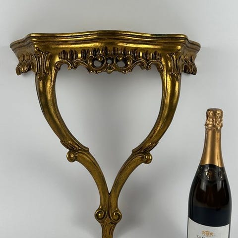 Splendidos vægkonsole af italiensk håndværk (c. 1950), karakteriseret ved et slankt design, der forener neoklassicismens strenghed med glamouren fra mid-century-æraen.