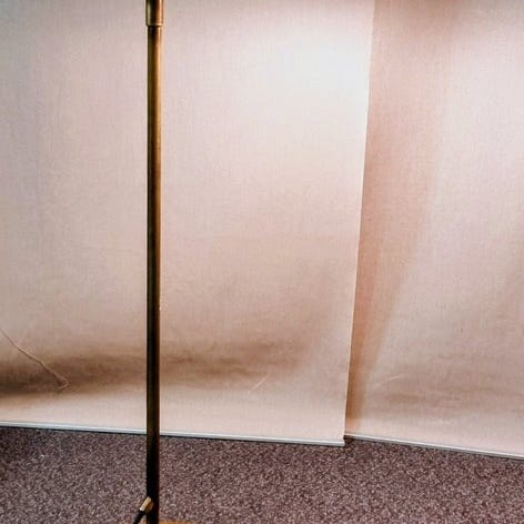 Masterlight Design stålbordslampe i moderne industriel stil med buet arm og skærm af metallameller, justerbart hoved og dæmper, mål 50 cm høj, 8 cm bred og 40 cm dyb, årstal 1990–2000, i god brugt stand og i virket. Klik på den blå "gå til varen" knap, for at købe eller byde på denne vare. Den samlede pris vil blive vist inden du afgiver dit bud.