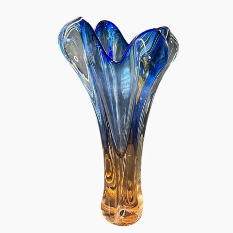 Elegant håndblæst glasstykker i mid-century modern stil, 'VIS' fra Art Cristal Bohemia, Tsjekkiet, 19 cm bred, 13 cm høy, 6 cm dyp, gravet signatur i bunn, i utmerket stand. Klik på den blå "gå til varen" knap, for at købe eller byde på denne vare. Den samlede pris vil blive vist inden du afgiver dit bud.