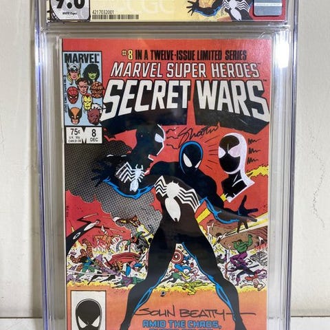 EGC 9.5 Venom – første samlede optræden af Venom, første udgave, Marvel Comics, nummer 300 (1988), af David Michelinie og Todd McFarlane, i fremragende stand. Klik på den blå "gå til varen" knap, for at købe eller byde på denne vare. Den samlede pris vil blive vist inden du afgiver dit bud.