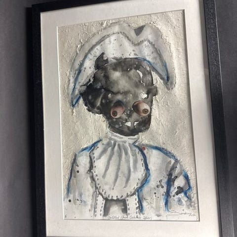 Series Mask, et værk af Steve Bandoma fra Congo (2012), 100 cm i højden og 35 cm i bredden, proveniens: indsamlet i RDC og erhvervet hos kunstneren. Klik på den blå "gå til varen" knap, for at købe eller byde på denne vare. Den samlede pris vil blive vist inden du afgiver dit bud.