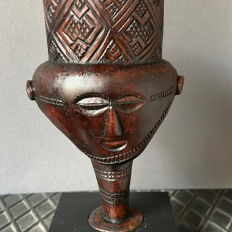De trækopper, som tilhører Kuba-folket, hjemmehørende i Centralafrika (nu Den demokratiske republikken Congo), er meget mere end simple praktiske beholdere: De udgør en dyb kulturel, kunstnerisk og symbolsk udtryk. Håndskåret af dygtige håndværkere, fremstilles kopperne normalt i fast lokalt træ og kendes ved deres elegante former og afbalancerede proportioner.
