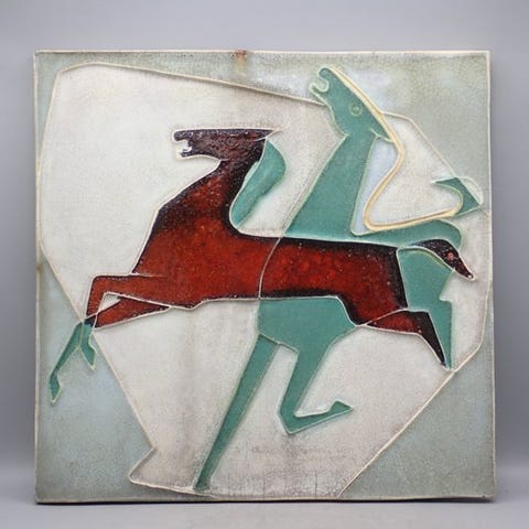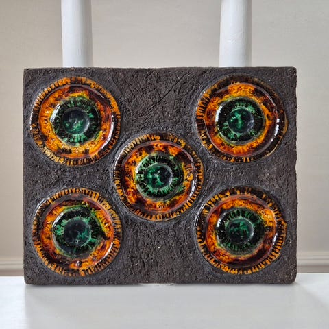 Keramikvægplade i mid-century modern stil af Helmut Schäffenacker, fremstillet i Tyskland i 1960’erne, mål 45 × 17 × 3 cm, i fremragende stand. Klik på den blå "gå til varen" knap, for at købe eller byde på denne vare. Den samlede pris vil blive vist inden du afgiver dit bud.