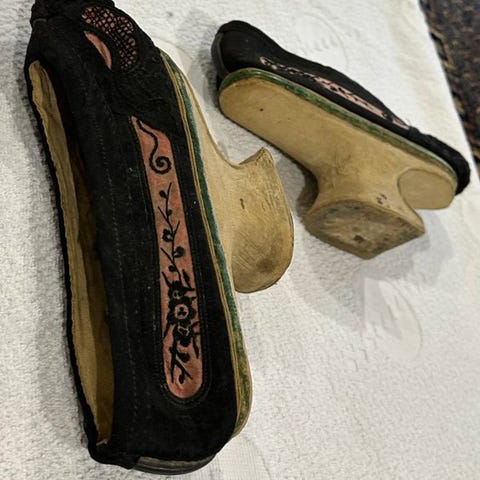 Dote da Cerimonia 745 g, et par iørestykkede sølvsko fra Indien, Moghul-dynastiet III (1627-1857), omkring 1860, håndskåret med håndindgraverede blomsterfigurer, dimensioner 250 × 85 × 65 mm, autentisk Originale og i god stand. Klik på den blå "gå til varen" knap, for at købe eller byde på denne vare. Den samlede pris vil blive vist inden du afgiver dit bud.