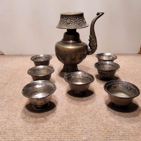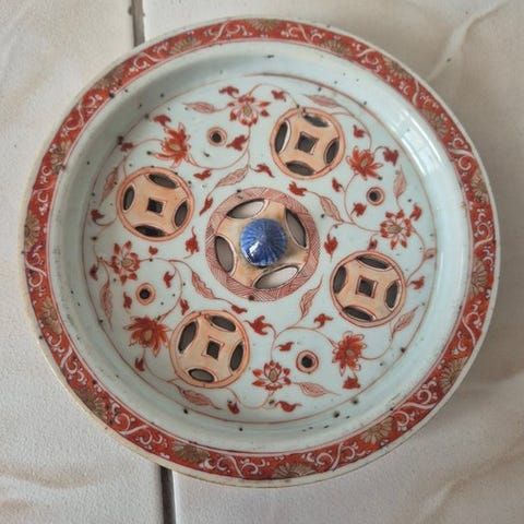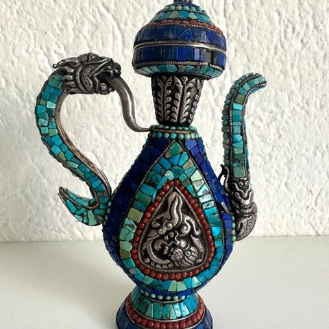 Ekstremt sjældent låg til en tibetansk rituel kop KAPALA - Sæbessten og kobbe...